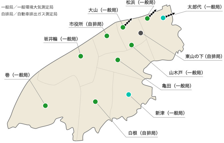 新潟県内における現在の大気環境(速報値)や光化学スモッグに関する情報は次のリンクからご覧いただけます。